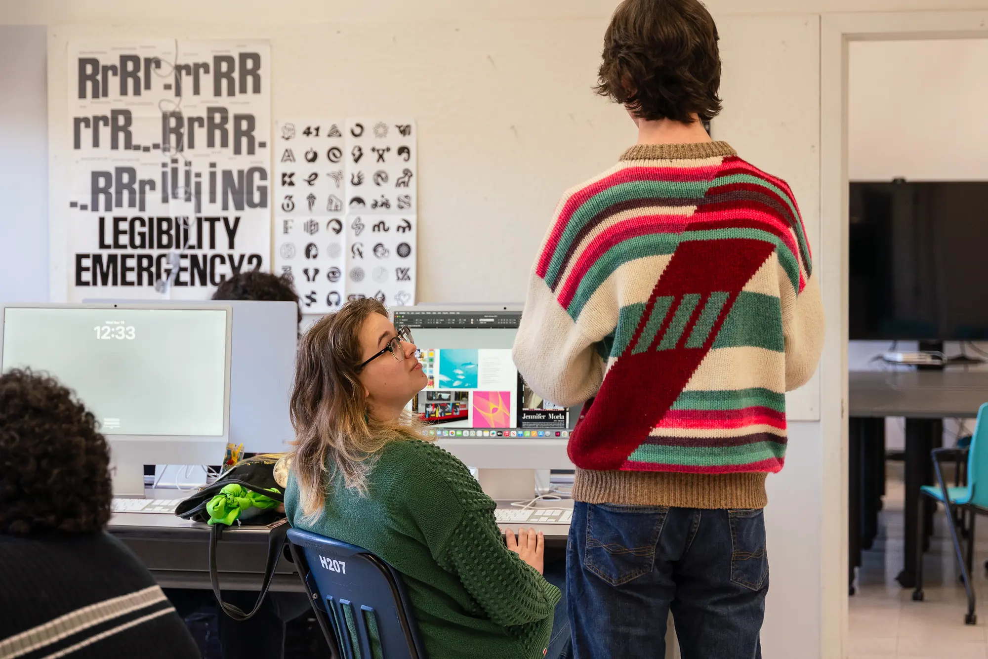 Throughout their first year, students explore observation and drawing, color and two-dimensional design, three-dimensional form and space, time-based work, and the experimental practices used by many contemporary artists and designers. Faculty from a variety of disciplines guide students through prompts, research, collaborations, and critiques, honing the skills students will need to succeed in their concentrations and beyond.