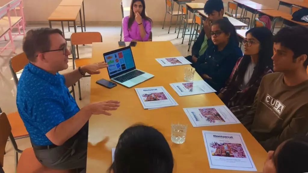 President Kurt just returned from his second trip to India. He spent five days traveling throughout the country, meeting with high schools catering specifically to young and aspiring artists. There, he spoke to juniors and seniors about art colleges generally and Montserrat in particular. As the college brings more International students to campus, we are proud to partner with many schools in India to share new cultures and the diversity of art with our Montserrat community. Included here is a photo of President Kurt meeting with students in Jaipur.