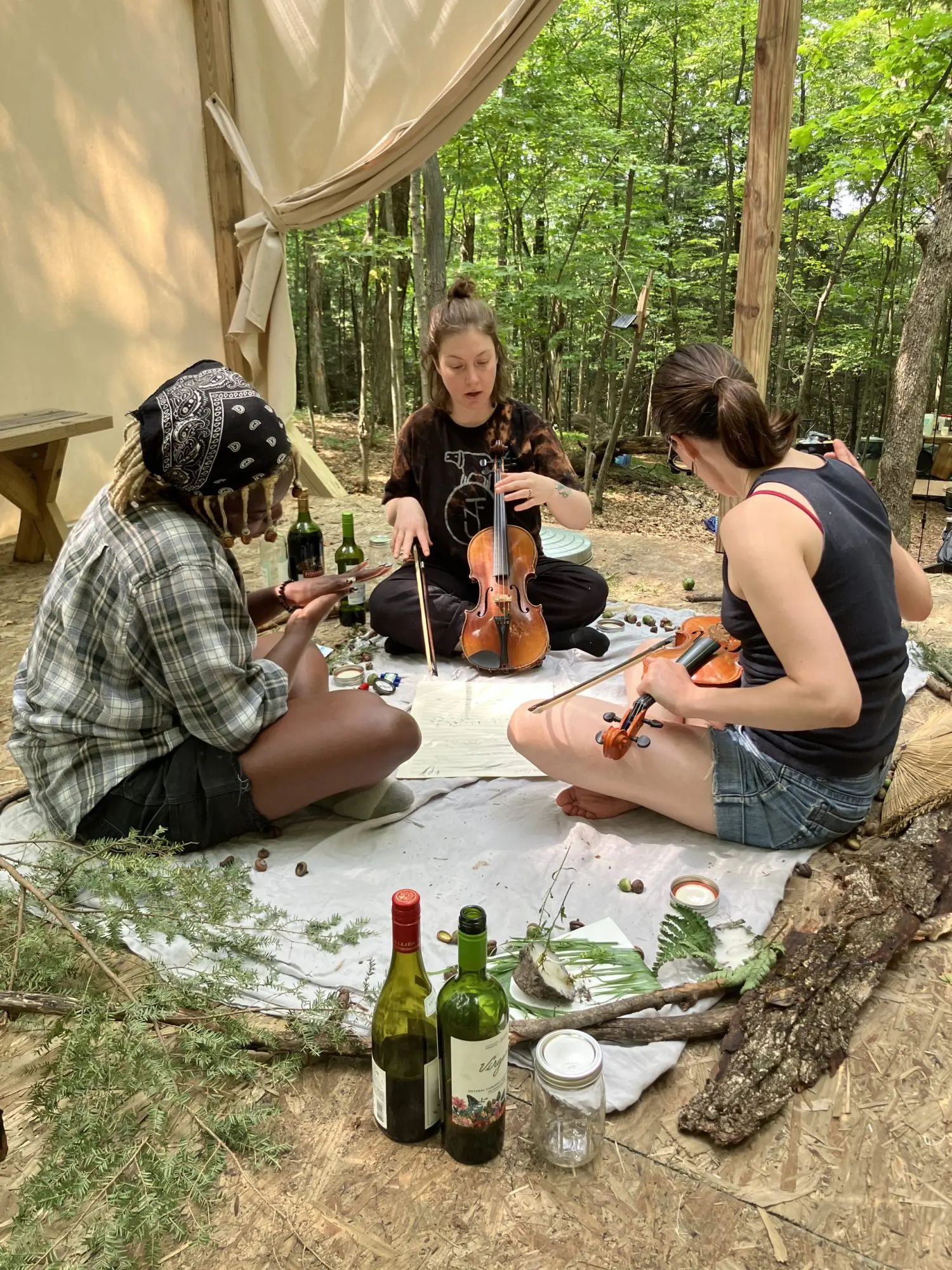 The residency More Trees Than People!! took place on 26 acres of woods and meadow in Summit, NY. Surrounded by farmland and lakes the property presents myriad opportunities for both solitude and intentional community building. As the current caretakers, artist Beatrice Modisett and percussionist Ellery Trafford are hand-building environmentally friendly dwellings for artists, musicians and writers to enjoy this space with minimal impact. Despite human presence the property continues to be a haven for wildlife. Every decision made on the property centers reciprocity, gratitude, equity and sustainability and we welcome artists and makers with similar ethics to the property. For more information about possibilities for hosting artist residencies, recording sessions, performances, outdoor installations and more, contact [email protected].