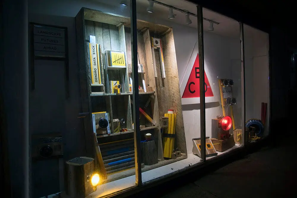 David Buckley Borden’s installation, Site Visit, can now be viewed at the 301 Frame Gallery at Montserrat College of Art in Beverly, MA. Site Visit is a traveling installation intended to promote a cultural ecology supported by art-based interdisciplinary science-communication. The installation includes twenty-four speculative design objects ranging from “Back 40 Eco Monitors” for the suburban corporate-class compound to a “Flood Light Warning System” aimed at warning coastal citizens of approaching storm flooding.