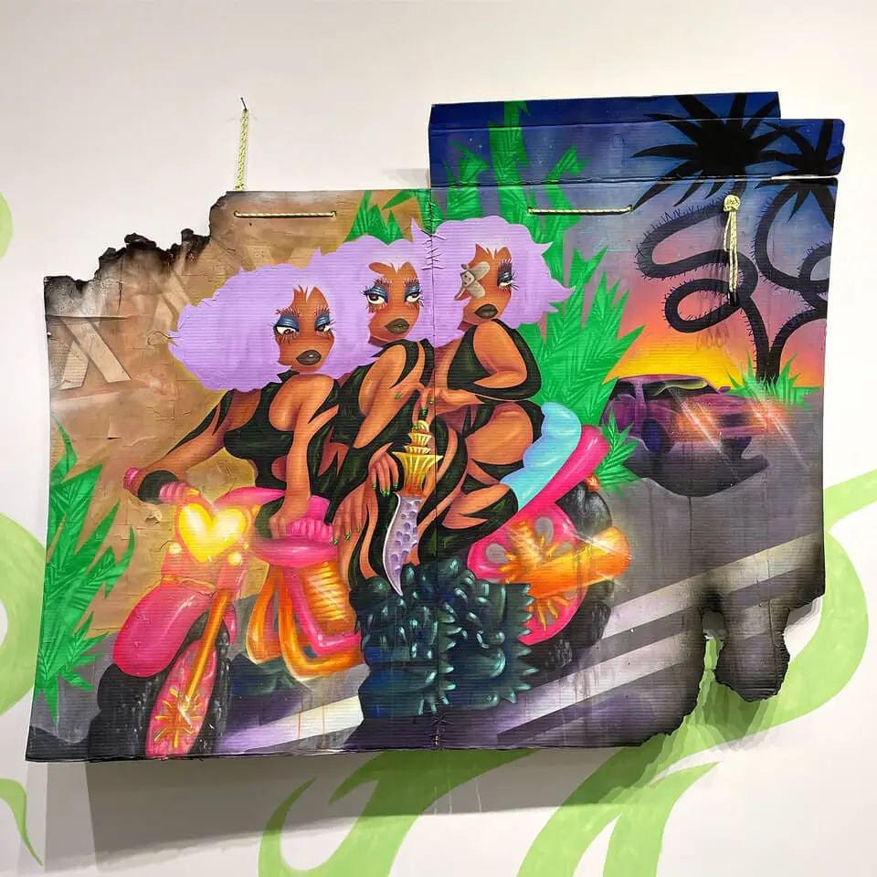 “A Bite of Cúcala” is an excerpt of the solo exhibition “Enter the Cúcala” by the Greater Boston artist displaying the collection of the fluorescent story world ‘Cúcala’ and its survived femme characters. This bite brings in two ends of the island: The quiet line between wholesome farm living and self-sufficient solitude, and a bimbo-like whiplash of a girls’ night out around questionable city slickers. Both scenes, based on true situations, provide balance to healing attached to the perspectives and battle scars that inform the next episodes of our stories.