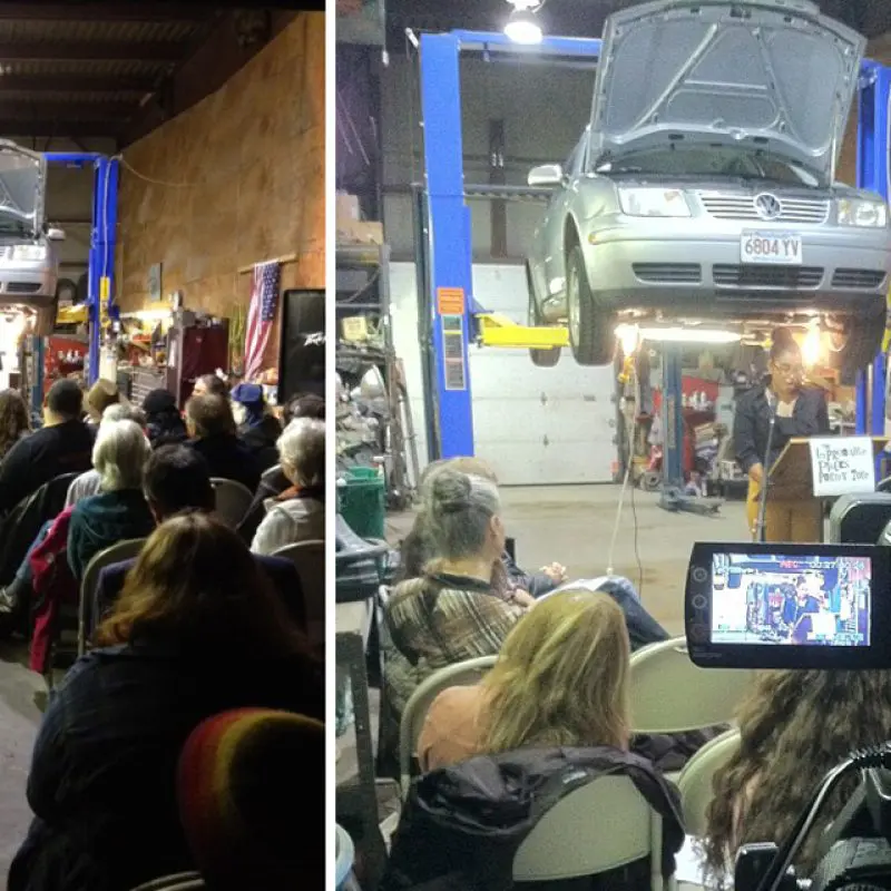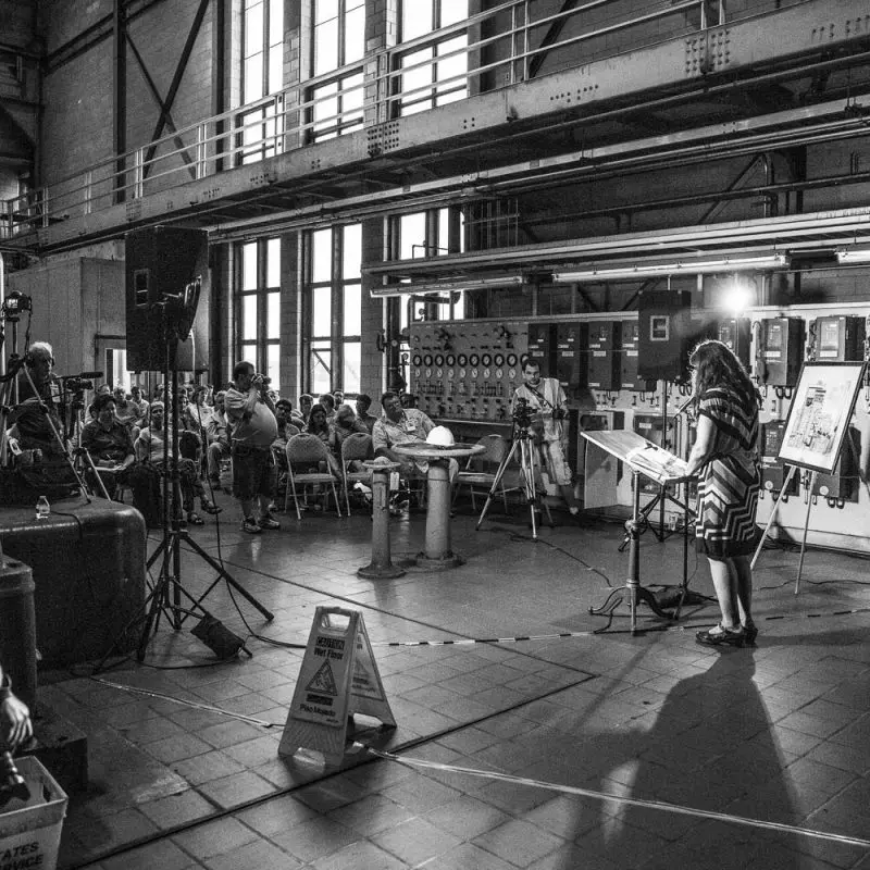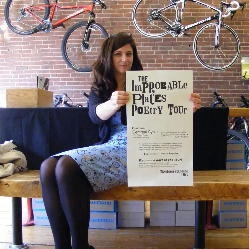 The Improbable Places Poetry Tour is Montserrat College of Art’s way of bringing together poets and enthusiastic listeners to celebrate the power of poetry and community. At each tour stop a new venue and theme is selected. Started in 2010 by Colleen Michaels, the Improbable Places Poetry Tour has traveled from bike shops to power plants, and from tattoo parlors to Viking ships, with a line-up of poets each reading one poem.