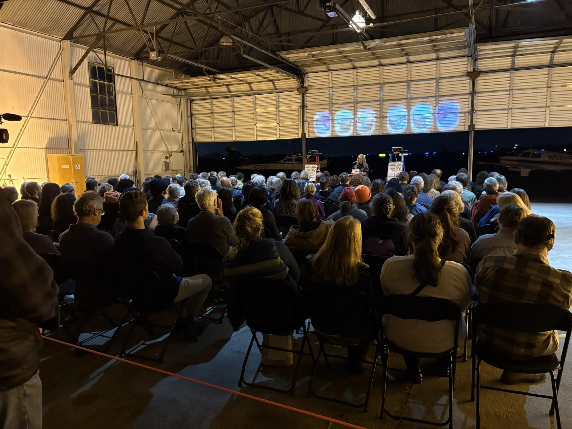 On October 22, 2024, The Beverly Regional Airport hosted a night of poetry. Boarding began at 6:30pm in the main terminal. The reading began at 7pm in an airport hangar that is the site of an intervention by artist Liz Nofziger. The event was free and open to the public.